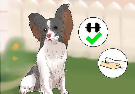 Consider a Papillon. This toy breed is easy to train, athletic, happy, and very friendly! Its butterfly-like ears distinguish it from other breeds, and it enjoys regular, lively exercise with its owners. Papillons do not have an undercoat and don't need much grooming. This curious dog takes quickly to training exercise and is a great choice for families or individuals who are searching for a small, trainable dog. The average Papillon lives 12-16 years and weighs 4-9 pounds.