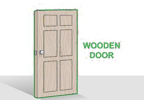 Pick a wooden door for a long-term investment in your home. Wooden doors are a classic option, and can provide a luxurious, high end look to your house’s exterior. There are a number of types of wooden doors available, including solid, hollow, and solid core, which each have their own advantages and disadvantages. Hollow wooden doors provide the look of a wooden door, but at a lower cost. However, they only have a lifespan of 20 to 30 years. Solid core doors are wooden doors filled with a wood composite material. They have a lifespan ranging from 30 to 100 years. . Solid wood doors will typically last for more than 100 years. They are also very difficult to break or kick open, and are therefore a great option for security. Wooden doors are typically the least energy efficient material for your front of door.