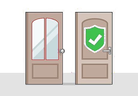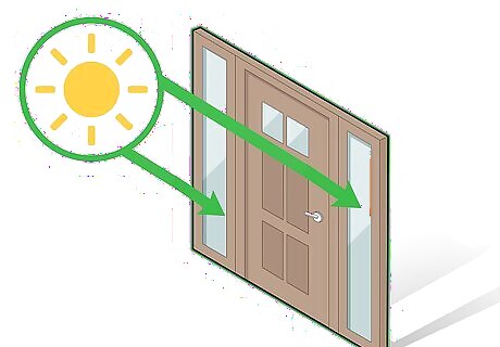Let in natural light. If you’d like to let in some natural light, purchase a door with an inset window. Sidelights, windows that are placed to either side of the door, can let in even more natural light. Glass windows can be broken, making them less secure. If you are concerned about security but still want a front door with a window, choose a door where the window is high above the doorknob. This makes it more difficult for a potential intruder to open the door from the outside by breaking the window.