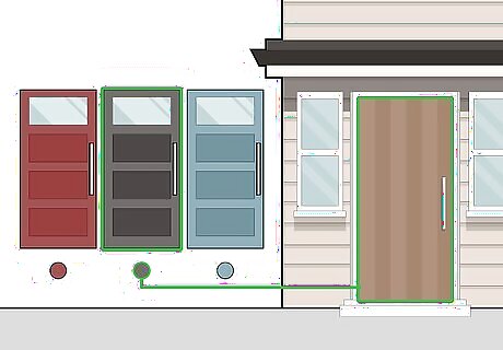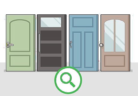 Choose the color of your door. Doors can be purchased or painted in any number of colors and finishes. For more conservative designs, pick a color or finish that ties in with the existing color palette of your home. For more adventurous designs, pick a bold, contrasting color.