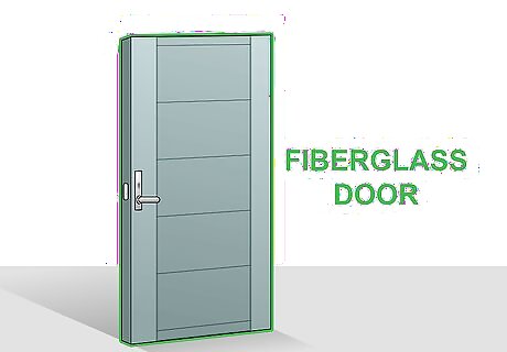 Choose a fiberglass door for a well-rounded option. Fiberglass doors are usually more expensive than vinyl or steel, but are less expensive than wood. If you want the look and durability of wood at a lower price, then chose a fiberglass door with a wood finish. Much like solid wood doors, fiberglass doors can last for over 100 years. Cheaper fiberglass doors may be hollow, and may crack easily. Solid fiberglass doors may be more expensive, but are also more secure.