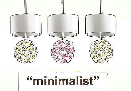 Look for inspiration. Once you decide on a budget for your centerpiece, look through bridal catalogs and the Internet to start gathering inspiration. Cut or print out pictures of hanging centerpieces that appeal to you and create a mood board of centerpieces that you like. You can create a physical mood board for your centerpiece or use a website like Pinterest to organize your ideas virtually. At this point, don't worry about the prices of the individual centerpieces that you see pictures of. This process is more about discovering what colors, textures and types of flowers appeal to you. It's ok if you are attracted to very different kinds of centerpieces. Once you take into account details about your wedding such as venue, style and general color scheme, you will be able to pinpoint what kind of centerpieces would or would not work for your individual wedding. The only thing that you should try to decide as you gather inspiration is if you want a floral centerpiece, a non-floral centerpiece, or a mix of floral and non-floral elements. Floral centerpieces work well for classic, traditional-style weddings, whereas light-based or sculptural centerpieces are great for outdoor weddings or weddings with a more modern style.