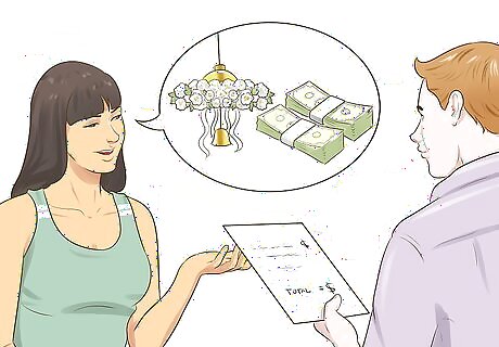 Establish a budget for your centerpiece. Though it may not be the first thing to come mind, your budget is one of the most important aspects of your choosing your centerpiece. Sit down with your significant other and whoever else may be involved in the budgeting of your wedding and agree on a price range for your centerpieces. The size of your wedding is an important consideration. If you are having a large wedding and you are having centerpieces above each table, you will need to purchase more centerpieces, whereas if you are having a smaller, more intimate wedding, you can allot a smaller amount of your wedding budget to the centerpiece. There are several ways that you can save money on your centerpieces. The more flowers you use, the more expensive your centerpieces will be. To save money, you may decide to have a light or candle-centered centerpiece, or a more sculptural centerpiece.