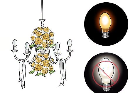 Choose subtle lighting. If you want a light-based centerpiece, make sure that the light is soft and pleasant, as opposed to overly bright. Choose bulbs that give off a warm glow, and assess the centerpiece together with what you know about the lighting of the venue to make sure that the room isn't too dim or too bright. If you are using colored lights for a modern, artsy effect, use colors that flatter skin tones such as pinks and purples.