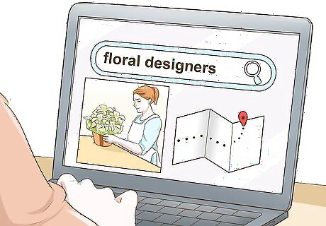 Research floral designers or wedding designers in your city. Begin your search for florists or wedding designers early, ideally about 10-11 months in advance. Begin by doing an Internet search of florists or designers in your town or city. Visit their websites, look at pictures and read reviews of their work. If you want a floral-based centerpiece, look at florists or floral designers who specialize in weddings. If you are more interested in light-based designs or sculptural designs, find a floral designer that works other materials, or a wedding designer who has experience making hanging centerpieces. Researching florists or designers and looking at their work not only can help you choose what florist you want to use, it can also give you the ideas and inspiration you need to help you know what you want.