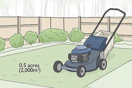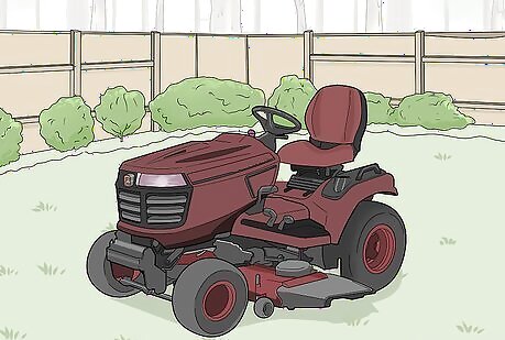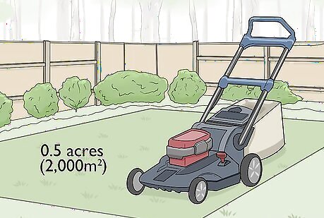 Tend larger yards with a riding mower. Look into a riding mower if your property is larger than 0.5 acres (2,000 m). If you don’t want to dedicate a large chunk of your day to mowing, then a riding lawnmower might be the best option. If you invest in this type of equipment, be sure to have shed or other storage area on hand. Certain tractor models can also work as lawnmowers. Riding mowers cut in larger lengths, ranging from 30 to 50 inches (76 to 127 cm).