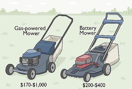 Go with a walk-behind lawnmower if you're on a budget. Walk-behind lawnmowers are the most cost effective options available. Gas-powered mowers can range anywhere from $170 to over $1,000. Electric equipment tends to be in the $200-$400 range. Take your budget and yard size into consideration before choosing the special features you want.