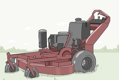 Manage tricky terrain with a zero-turn-radius tractor. Scale slopes and bumps easily with a zero-turn-radius tractor, which turns very easily. Use this style of equipment at a slow, easy pace to manage any terrain difficulties. You can purchase these mowers in both gas-powered and electric varieties. Electric mowers tend to be more expensive than gas-powered mowers, and tend to cost at least $2,000. Gas-powered mowers a bit cheaper, and start at $360.Did you know? If you manage a larger piece of property (e.g., a farm), you might want to consider investing in a tow-behind mower.