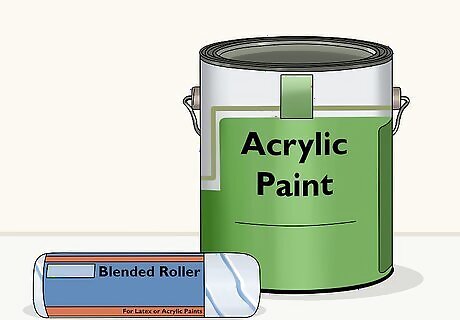 Buy a synthetic or blended roller cover for latex or acrylic paints. Covers made from polyester, nylon, or dacron work well with any latex, acrylic, or oil-based paint. For a longer-lasting cover, choose one that's a blend of polyester and wool. The wool helps the roller pick up more paint while the polyester prevents the roller from wearing out quickly.Tip: Although you can use a blended cover for oil paint, it's fine to use a natural cover made from mohair or sheepskin. These are more expensive and can't be used with latex paint, but they apply oil paint well. Synthetic covers don't pick up as much paint as a wool cover, but they last a long time when cared for properly.