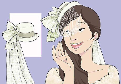 Wear a hat with a country vibe. A hat can be a great accessory for your wedding day, especially if you're forgoing a veil. To pick a rustic hat, go for small hat with a tiny brim in a neutral color like white. A hat with a small embellishment, like a tiny ribbon, can add some extra decoration without killing the rustic vibe.