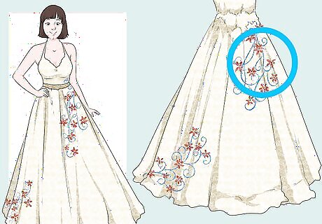 Opt for an embroidered gown. Embroidery can make your dress look more rural. If you want something fancy, but do not want to go overboard with embellishments, an embroidered gown may work for you. Embroidery can be great if you want a splash of color. Some gowns have small embroidered designs in colorful shades like red and blue.