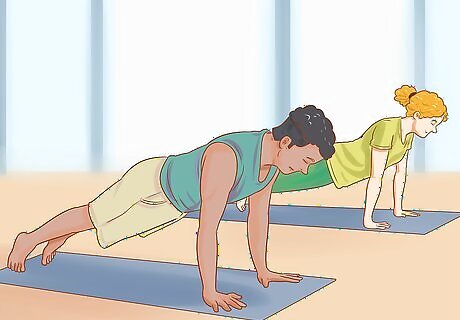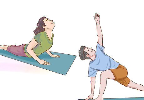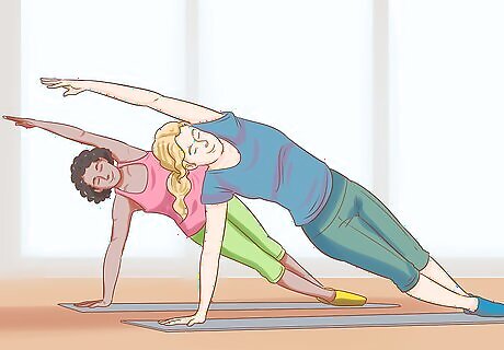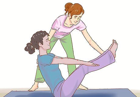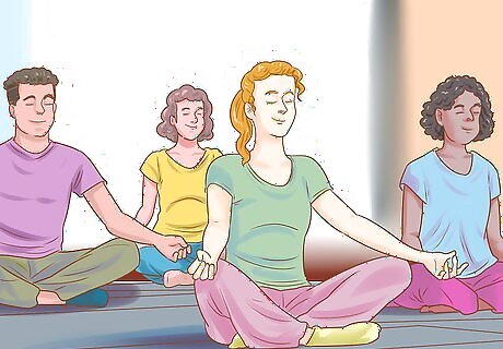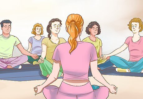 Be attentive and listen to the teacher for instructions during class. If you went with a friend to yoga, now is not the time to chat. Your instructor will be giving verbal directions for how to position yourself for each movement, so listen closely. If you have trouble paying attention, try to position your mat as close to the front of the classroom as you can. This will minimize visual distractions between you and the teacher.