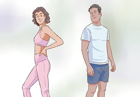 Wear loose, comfortable workout attire so you can move easily. A tank top and yoga pants or a T-shirt and athletic shorts are all appropriate outfits to wear to your yoga session. You want to be able to move fluidly from pose to pose, but you don’t want your clothes to be so loose that they get caught on anything. Don’t worry about shoes and socks! While you’ll wear them to the studio, it’s normal to have bare feet during class to keep you from slipping.