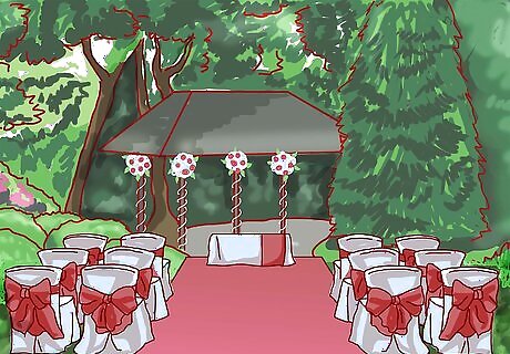 Add ribbons to chairs. Ribbons give off a wonderful, elegant vibe. If you're having guests sit on chairs, tie a ribbon around the backs of each chairs. This adds a little extra to the ceremony decorations and can give a wedding a great, elegant feel. Make use of your color scheme. If you're going with ethereal colors, have the ribbons be in varying shades of light pink, for example.