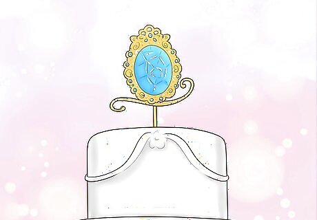 Add an elegant top to the wedding cake. Instead of going for the traditional bride and groom wedding topper, pick something with an extra touch of elegance. For example, you could have a word like "Love" spelled out in sparkly, gold lettering or have a topper in the shape of something like a heart on your cake.