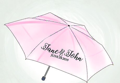 Use umbrellas for an outdoor wedding. Umbrellas can give off a classic, graceful feel and work particularly well for a vintage wedding. If you want to add some elegance, invest in umbrellas. Have umbrellas hovering over tables at the reception. This will both provide guests with shade and add a touch of elegance. Incorporate your wedding colors. If your colors are ice blue and light pink, for example, choose umbrellas in these colors.