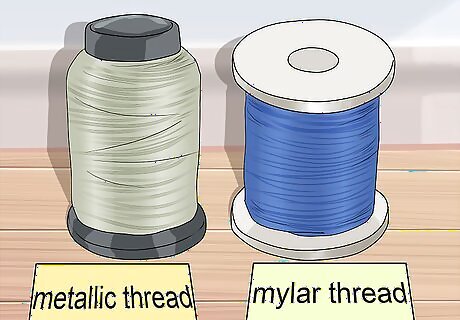 Try metallic and mylar threads for a reflective look. If you want your project to have the appearance of silver, gold, or bronze, then choosing a metallic or mylar thread may be the best choice. For example, you could embroider a gold star on a garment as an accent, or use metallic thread to embroider someone’s name or initials. However, keep in mind that metallic and mylar threads can be difficult to work with. You will need to adjust your machine’s tension and go at a slower speed while working with these threads.