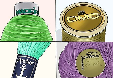 Start out with stranded cotton. Stranded cotton is the standard type of thread for hand embroidery. It consists of multiple strands, which you can break apart and use between one and six of the strands at once. Using one strand will create a delicate effect while using more strands will result in a thicker, textured look. If you are new to embroidery, then you may want to start out with this type of floss.