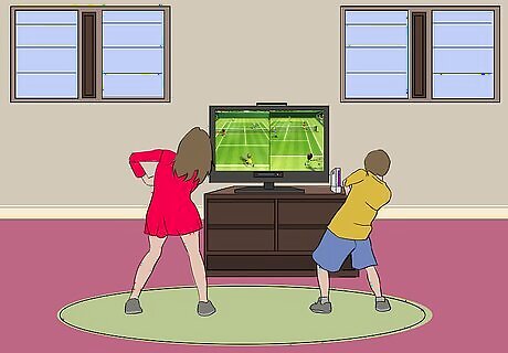 Select fitness-based video games. Electronics and video games are such a regular part of life for children that it may be best to find video games that actually promote movement and fitness. Most video game consoles (ex. XBox, Playstation, and Nintendo) have a variety of games available that focus on body movement. These games can be a great way to encourage physical fitness among kids who do not enjoy taking part in sports or other outdoor activities. Try out some of the following games: Wii Fit Plus: Provides a number of exercises to be completed. XBox Dance Central: Requires the player to mimic the dance moves being completed on the screen. A fun way for kids to be active and listen to their favourite songs. XBox Kinect Sports: Using a motion controller, players can take part in 6 sports (bowling, boxing, track and field, table tennis, football, and volleyball) that will get them moving. Playstation Zumba: Requires players to complete the dance-based Zumba workout using Playstation Move technology. NFL Training Camp for Wii: Uses new remote sensors on your arm and leg to track your fitness while taking part in an NFL training camp.