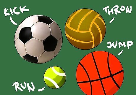 Supply your kids with a variety of balls. Soccer balls, basketballs, and baseballs are excellent toys to get your kids moving. You can also purchase soft and squishy balls for younger kids and indoor use. Balls can be used to play traditional sports, or kids can use their imaginations and come up with a variety of games that will keep them active. Balls can also help to develop kicking, throwing, running, and catching skills. You can find suitable balls for kids of all ages and abilities. Play catch or soccer with your child in order to help them develop fundamental movement skills. This is a fun way to play with them!