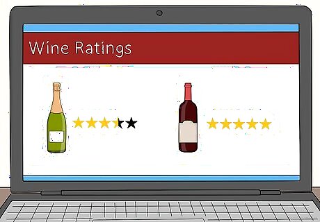 Consider using wine ratings to help pick out more expensive bottles. If you're trying to impress, it may be best to do some research before spending the cash. Websites and magazines like Wine Spectator, Food & Wine, and Wine Enthusiast offer apps and online reviews of just about every wine on the market, allowing you to quickly and easily see if an expensive wine is worth the sticker price. Most wine shops place labels indicating high-ranked wines. That said, they never get all of them, and you shouldn't skip a wine just because it wasn't labled.