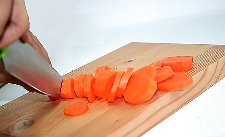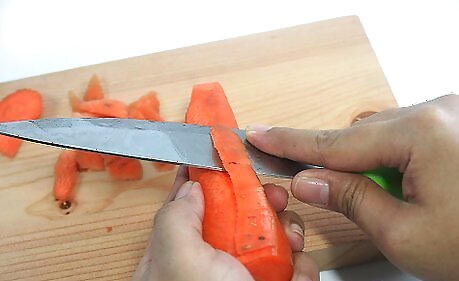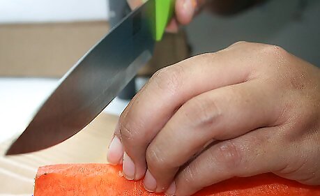 Decide how you would like the final result to look like. Do you want to cut into cubes, sticks, julienne or Japanese flowers? The possibilities are only limited by your choice of vegetable and the style of the cuisine you are aiming for.