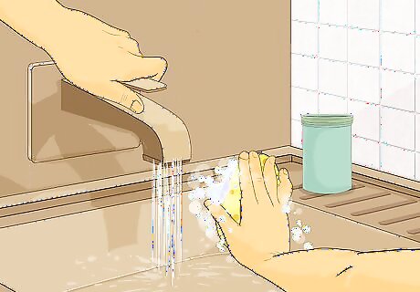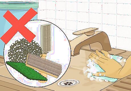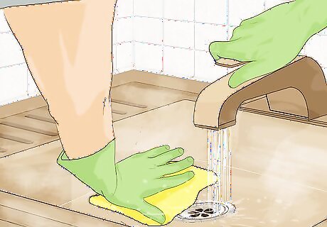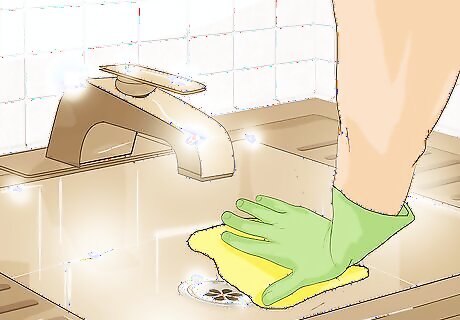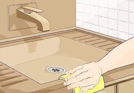 Dry the sink. Use a dry rag or dish cloth and wipe your sink dry. Microfiber cloth is also a very absorbent material that can help you dry off a wet sink. If you do a basic cleaning on your sink at least once a week, it will be easier to clean your sink in the future.