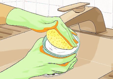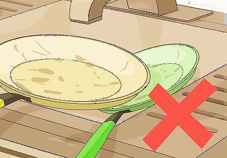 Remove pots and pans from the sink to prevent pot marks. Wash your dishes, pots, and pans as soon as you are finished with them. The longer things stay in your sink, the more likely they will stain or scratch the finish.