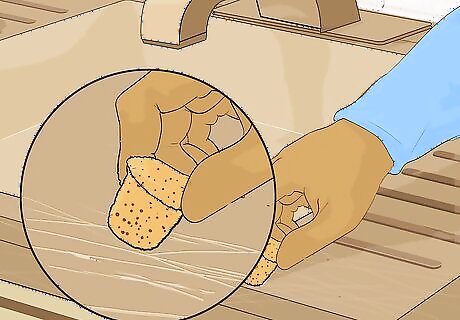Use the cork from a wine bottle to scrub away pot marks. Scratches left on the basin and sides of your cast iron sink are called pot marks and are created by pots and pans. These lines or marks can be worked out by using a wine bottle cork. Scrub the area with the cork until the scratches have been removed. The soft cork will wipe away any marks without scratching the finish on your sink.