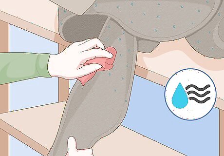 Dry your saddle with clean, dry towels. Use a dry towel to scrub the saddle dry, using firm, circular strokes. Continue using a towel until it's been fully saturated with water. Once a towel is completely soaked, swap it out for a dry one and continue drying your saddle.Warning: You do not need to finish synthetic leather. In fact, doing so could damage your leather depending on the brand of your saddle.