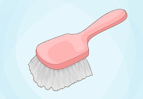 Use a dry stiff-bristled plastic or brass brush. Suede tends to get worn down when soap or water are introduced into the material, which means that you'll need a tougher brush to extract grime and dust. Opt for a clean, strong stiff-bristled brush.Tip: You can use canned air to blow initial layers of dust out of your suede fibers if you'd like. This may make brushing easier for you depending on the thickness of your suede's fibers.