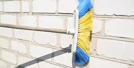 Scrub the brick's surface thoroughly with a brush. After 10 minutes, use a scrub brush to clean away the dirt in circular motions. For stubborn areas, use applied pressure to lift the dirt or stains from the brick. Again, avoid using wire brushes to clean bricks. If you cannot scrub off all of the dirt by scrubbing, you may need to use acid or a pressure washer to clean the brick.