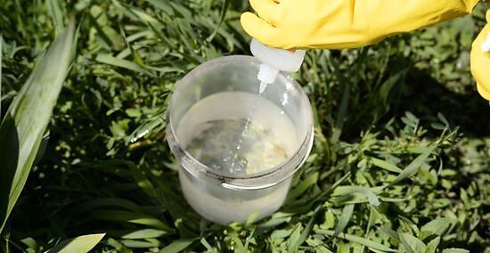 Fill a bucket halfway with water, then add the boric acid. The concentrated acid's strength will determine how much acid you'll need for a diluted cleaning solution. Pour the water first instead of the boric acid to prevent burns from the acid splashing up while adding water. You can buy boric acid online or from most home improvement stores. Boric acid generally comes in dry, highly concentrated packages before they're mixed with water, so handle it carefully and check the directions for how much to add.
