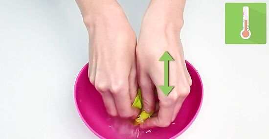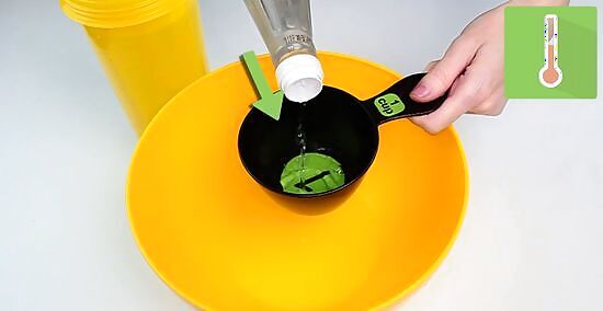Create a warm water and white vinegar mixture. Warm water and white vinegar together will cut through grease and help clean the surface of cabinets, countertops, and similar surfaces. To create the mixture: Pour 5 cups of warm water in a bucket. Add 5 cups of white vinegar. Mix them together.
