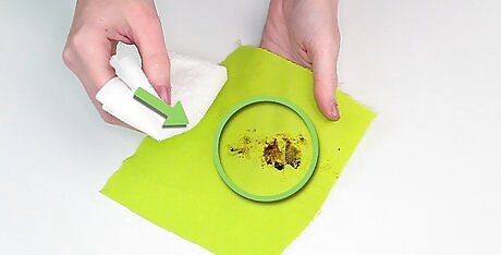 Rub or dab the product after you’ve applied it. Some products and surfaces will benefit from you rubbing or dabbing the cleaning product onto the grease spot. By doing this, you'll help the product penetrate the surface better. Feel free to scrub hard surfaces with an abrasive pad or something similar. Avoid rubbing or scrubbing fabric surfaces. If the directions on a cleaning product instruct you to dab it into the grease spot, do so.