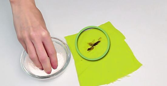 Sprinkle absorbent powder on the grease. After you’ve collected as much excess grease as you can, you’ll need to sprinkle absorbent powder on the grease. The powder will soak up the grease, thus making it easier for you to clean the spot. Pick your powder appropriately (based on fabric or material) and use as much as you need. Some powders you can use include: Corn starch Oatmeal Kitty litter Powdered detergent Peat moss