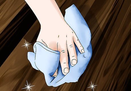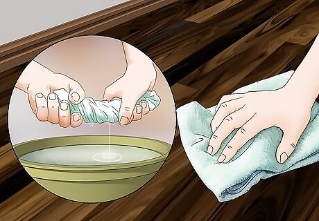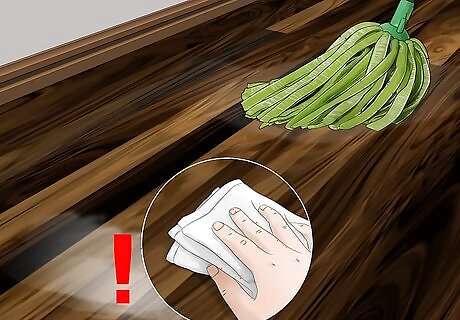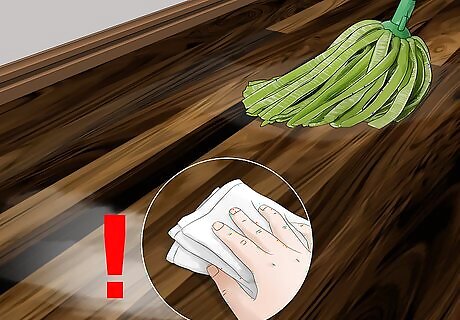 Check the floor for water as you go. When using a mop, you may see water pooling on the floor. Don’t leave this to sit. Use a clean, absorbent towel to quickly pick up excess water. Be sure to wring out your mop to avoid causing damage to the wood.