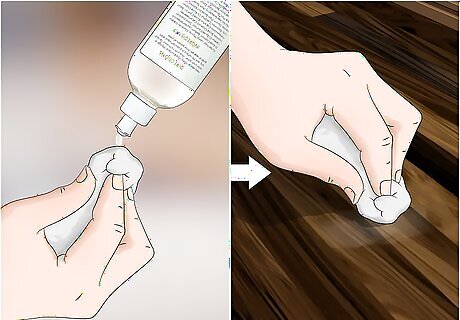 Dampen a mop in the mixture. Place the mop in the solution, then wring it out before use. This is necessary to do to avoid leaving lots of water on the floor. Cotton mops can make wringing difficult, so consider using a microfiber or spray mop. To clean small areas, use a cloth or sponge.