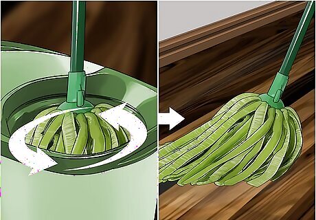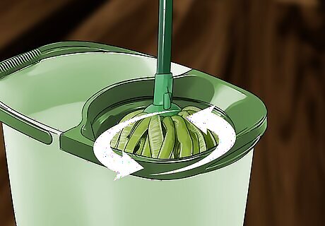 Dampen your mop in the solution. Remember to wring out the mop thoroughly so it doesn’t leave puddles of water on the floor. It should not be dripping. Use a cloth mop or spray bottle instead of a cotton mop in order to better control the amount of water you use.