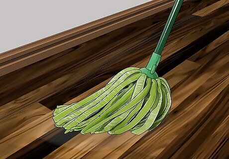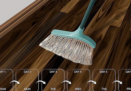 Sweep up debris daily. Routinely sweeping the hardwood removes dirt and protects the seal on the wood while mopping. It should also be done before you mop.