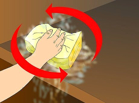 Dip a sponge into the oil soap. The sponge should have both a soft side and a scouring side for best results.