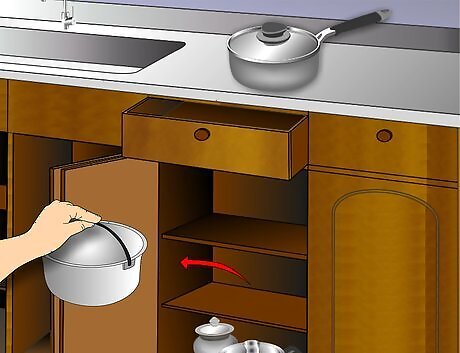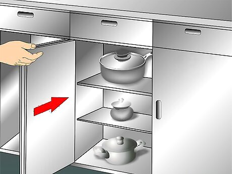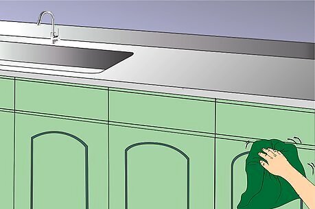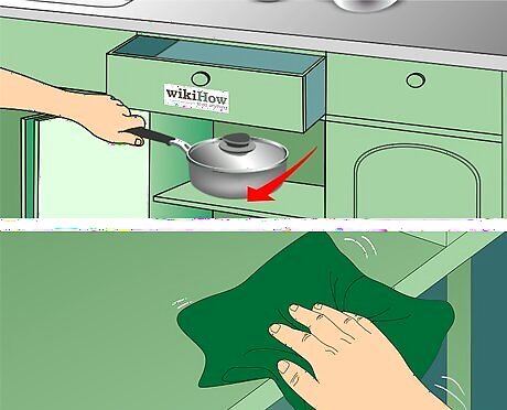 Empty out your kitchen cabinets. Clean the interior with soap and water.