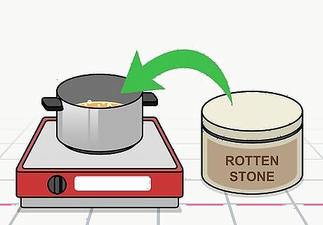 Mix in rottenstone. Rottenstone is a powdered limestone. Look in a home care center for it. Add an equal amount of it to the linseed oil. Again, all you need is a small amount, enough to spread out along the surface of your pewter. This paste is great for dull and matte finishes, but should never be used on oxidized pewter.