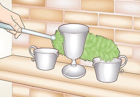 Dust your decorative pewter pieces. This should be done regularly even while you’re not washing or polishing the pewter. Use a duster or a soft cloth such as a microfiber cloth to remove all the dust clinging to the pieces. The more you do this, the longer you’ll preserve the finish and the less you’ll need to wash and polish the pieces.