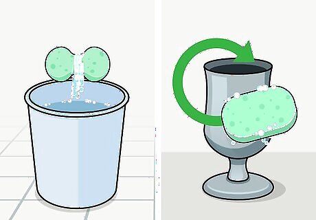 Wash the pieces. Do not apply the solution directly onto the pewter—always use a rag or a sponge. Dip a sponge into your soapy water and squeeze out the excess. Wipe your pewter to remove the grime. You can also use a soft cloth to spread the soap and try to work it into the stains.