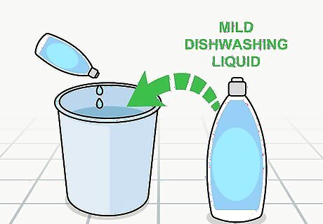 Add soap. Choose a mild dishwashing liquid. It works best for cleaning pewter. Avoid using anything abrasive, as these products will wear away at the finish and scratch the pewter. Squirt a little soap in your bucket or water container. Baby shampoo is also a non-abrasive detergent that can be used to clean pewter.