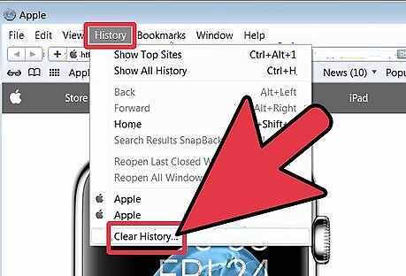 Click "History" on the main toolbar, then click the Clear the History option at the bottom of the drop down menu.