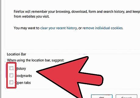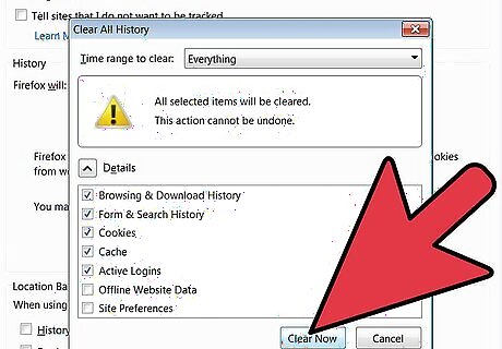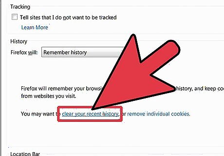 Select the Privacy tab in the Options window to clear the history. Here you can establish privacy options for future use by selecting your preferred option under the History subheading.