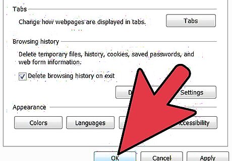 Close the Internet Options window by clicking Apply and then the OK buttons.