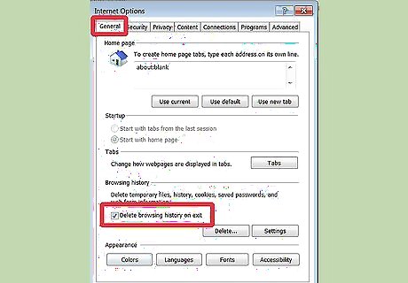Check the "Delete browsing history on exit" button, then click the Delete button under the Browsing History subheading to clear the browser history. The Delete Browsing History window will open. For the best security, make sure that all options are checked, including "Form data," "Passwords" and "InPrivate Filtering data." Click the Delete button and wait for the process to complete.